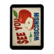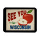 Um charmoso imã de geladeira de viagens vintage de Wisconsin com uma adorável maçã vermelha, junto com um texto divertido no estilo retrô que diz, "Vemo-nos em Wisconsin"
