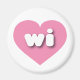Este ímã apresenta um legal e calmo coração cor-de-rosa contendo as letras maiúsculas, brancas, arredondadas e maiúsculas wi, uma abreviação lúdica para Wisconsin, o estado do texugo.