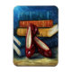 This artwork is inspired by the beloved children's classic: The Wonderful Wizard of Oz books. Even though Dorothy's magic slippers are silver in the book, they were designed to be red in the Technicolor movie to show up more vividly against the yellow brick road and are one of the most iconic items.