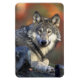 Magnet mostrada com uma impressão de foto de um lobo na natureza. Imagem de Ações a