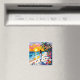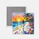Add a touch of tropical beach to your home with this gorgeous colorful magnet. Hang up your notes or pictures on your frig with this cute beachy magnet. A beautiful ai illustration done in an oil painting impasto style. A woman walking on the beach among palm trees, tropical flowers, turquoise waves, sea glass and seashells.