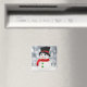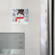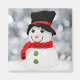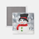 Um imã com uma fotografia de um bonitinho bonitinho de neve na neve.