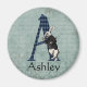 A design de decoração de casa em branco para Alice no País das Maravilhas, amantes de todas as idades, apresenta letra maiúscula / inicial A com preenchimento de harlequin preto e azul e a ilustração original do Rabbit Branco que foi pintada, em uma floral vintage angustiada e azul de escrita manual. Personalizar com nome ou outra mensagem