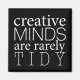 "As mentes criativas raramente são tontas." Este ímã tem um fundo preto e uma atraente tipografia branca.