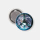 Digital creation of a blue-green peace symbol superimposed on planet Earth.