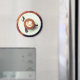 Um ímã elegante com uma xícara de café / cappuccino ou latte em uma xícara e um disco. Arte de creme bonito entrou no café. Em cores de castanho e branco.