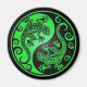 Este design Yin yang exclusivo apresenta duas lagartixas decoradas com linhas e espirais intrincadas. Os pés de cada lagarto estão espalhados em todas as direções, o fazer parece estar subindo na superfície do padrão. Os dois lados do yin yang são cópias invertidas um do outro que cria um belo equilíbrio dentro do design. Este padrão único da lagartixa é uma interpretação na moda deste símbolo tradicional para o equilíbrio da natureza.
