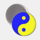 Yin Yang Magnet. Este ímã é decorado com um símbolo Yin Yang azul e amarelo. "Na filosofia taoista, yin e yang surgem juntos de uma quiescência inicial ou de um vazio e continuam caminhando em paralelo até que a quiescência seja alcançada novamente. Por exemplo, soltar uma pedra numa piscina calma de água simultaneamente levanta ondas e depressões mais baixas entre elas, e essa alternância de pontos altos e baixos na água vai irradiar para fora até que o movimento se dissipe e a piscina volte a se acalmar. Yin-yang, portanto, são sempre qualidades opostas e iguais. Além disso, sempre que uma qualidade atinge seu pico, começará naturalmente a se transformar em uma qualidade oposta: grãos que atingem a altura do cheio no verão (yang completo) produzirão sementes e morrerão no inverno (yin completo) em um ciclo sem fim" - Wikipedia. Uma ideia de presente de excelente.