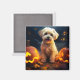 Imã Yorkipoo do Halloween Com Pumpkins Assustado