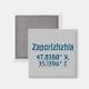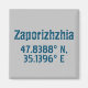 Design de ímã moderno apresenta coordenadas de latitude e longitude para Zaporizhzhia, Ucrânia com uma fonte azul escuro angustiada sobre fundo de cinza