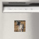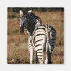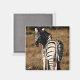 Magnet com pintura de zebra olhando sobre o ombro, apresentando-o para o espectador.