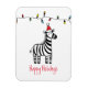 O novo design de Natal moderno e não tradicional para 2020 apresenta uma ilustração de zebra mesquinha com chapéu vermelho de Papai Noel, uma série de luzes de férias e um texto personalizável de "Feriados Felizes"