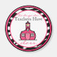 Um ímã para professores com o logotipo da dentro da escola cor-de-rosa, um quadro de impressão zebra em forma de círculo com forma cor-de-rosa. O texto preto e rosa diz "Professores do jardim de infância têm aula."