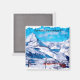 Pintura a aquarela colorida e personalizável da suiça Zermatt num Magnet que mostra a paisagem de inverno impressionante do destino viagem suíço nos alpes suíços. Faz um presente maravilhoso para todos os turistas deste famoso destino europeu da viagem. Faça-o seu e compre agora como um souvenir viagem.