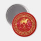 Esta design de imã de geladeira especificamente para o ano do cavalo (os nasceres de 1930, 1942, 1954, 1966, 1978, 1990, 2002, 2014) é criada em vermelho tradicional e ouro e apresenta um cavalo de folha de ouro colorido fundo de fogo de artifício adornado com o caráter chinês para "ano do cavalo" e uma elegante fronteira geométrica. Faz um presente único de Ano Novo ou aniversário. Procure ID542 para ver outros símbolos de zodiac e produtos adicionais com este design.