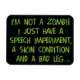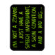 Onde quer que você vá, as pessoas lhe dizem, "Você parece um zumbi." E isso é ruim porque se os mortos-vivos realmente dominarem o planeta, você será confundido com um deles. Mas não se você estiver exibindo esta design de salvação. Ele explica a verdade para qualquer caçador de zumbis que possa ser: Não sou um Zombie. Eu só tenho um Impedimento de Fala, uma Condição Cutânea e uma Perna Má. O texto é verde-macaco, como carne de zumbi. É engraçado para o Halloween ou o ano todo. Esteja preparado quando o surto ocorrer. Veja o design em mais produtos sob o "Halloween" em nossa loja.