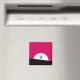 Um imã com um legal zumbi. Esquema de cor rosa e preto a negrito vibrante. Uma silhueta zumbi com braços estendidos na caça por cérebros. Uma grande lua branca ilumina por trás.