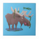 Esse alce engraçado está se divertindo no pântano! Desenhado no estilo de desenho animado.
