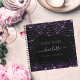 Um fundo preto, decorado com brilho sujo roxo, brilhos. Escrita escrita com letras grandes com baloiços e o texto: Obrigado. Personalize e adicione sua nota de agradecimento e seu nome.