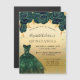 Um moderno, na moda e glamouroso ímã de convite para uma Quinceañera, festa de aniversário 15. Um fundo de ouro falso com poeira brilhante verde, um vestido verde esmeralda e rosas verdes, florais. O nome é escrito com um moderno estilo escrito à mão. Personalize e adicione os detalhes da sua festa.