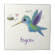 Este design bonitinho apresenta um beija-flor verde e roxo feliz com um amigo de abelhas em um fundo bolinhas amarelo. Tudo feito em estilo de ilustração de desenho animado feliz!