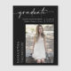 Sim! Ela finalmente se formou na escola, seja no segundo grau, na faculdade, na universidade, ou em um programa de formando, então agora é hora de informar a família e os amigos que ela fez isso! Comemore um momento de precioso de sua vida e envie esse cartão magnético de anúncio de graduação. Este ímã apresenta uma bela escrita caligráfica do texto de "formando" sobre fundo preto e a fotografia do formando. Basta personalizar e substituir o texto e a foto na caixa de personalização. Observe que a redação elegante do script de caligrafia de "formando" e outros elementos e trabalhos de arte gráficos não pode ser editada, excluída ou movida. Eles estão consertados.