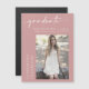 Sim! Ela finalmente se formou na escola, seja no segundo grau, na faculdade, na universidade, ou em um programa de formando, então agora é hora de informar a família e os amigos que ela fez isso! Comemore um momento de precioso de sua vida e envie esse cartão magnético de anúncio de graduação. Este ímã apresenta uma bela escrita caligráfica do texto do "formando" sobre um fundo rosa empoeirado e a foto do formando. Basta personalizar e substituir o texto e a foto na caixa de personalização. Observe que a redação elegante do script de caligrafia de "formando" e outros elementos e trabalhos de arte gráficos não pode ser editada, excluída ou movida. Eles estão consertados.