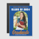 Este moderno ímã de anúncio de formando de fotos azul e laranja personalizado apresenta seu nome de segundo grau ou de faculdade para a classe de 2025. Personalize com o seu nome sob o chic, o guião manuscrito em negrito e o arco de tendências para um cartão magnético de graduação personalizado do excelente.
