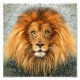 Feche o rosto de um Leão com diferentes estrelas coloridas como fundo. Imagem gráfica de pintura de leões.