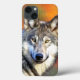 Cinza de Pintar Óleo de Imagem do Lobo com cores vibrantes como cinzas, branco, preto, amarelo, laranja, vermelho e alguns verdes.
