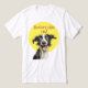 Para amantes de cachorros e donos de collies de fronteira, este design cômico tem uma ilustração de um adorável collie de fronteira com expressão feliz e de boca aberta junto com o texto Pai de Border Collie escrito em uma face casual, cômica. Uma forma amarela redonda que se assemelha ao sol aparece no fundo do design para obter cores e vibrações de atualização.