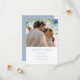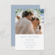 Este belo casamento branco e azul-chic 'Salve a Data' mostra uma foto de casal com uma bela camada de cor d'água hydrangea. O modelo inclui um conjunto contemporâneo de fontes azuis empoeiradas, sobre fundo branco na frente e azul empoeirado na parte de trás. Este item faz parte de uma coleção de suite de casamento de cheios que inclui convites e outros papéis de carta de casamento.