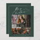 Cartão de Natal Fotográfico 3 do Script de Natal de Orçamento com tipografia manuscrita elegante e 3 fotos na frente. As costas têm uma foto de solteiro. Clique no botão editar para personalizar este design.