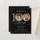 Foto de Orçamento Dourado Preto 100º Convite de Aniversário. Um convite especial para comemoração de aniversário, elegantemente desenhado, com uma foto personalizada de pessoa de aniversário e caligrafia com elementos florescentes de vintage. Simples o suficiente para ajustado de uma variedade de temas e cores! Precisa de ajuda? Basta entrar em contato comigo!