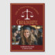 Este cartão magnético de anúncio de marionagem de chic e de lei de ouro personalizado, com tipografia clássica para uma classe de formando 2025 acima da foto de seu aluno. Personalize com seu ano de graduação sob as escalas brancas de justiça e fotografia para excelente de cartões personalizados de advogado ou magnetos de advogado.