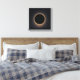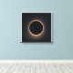 A imagem captura o momento inspirador de um eclipse solar total. Um disco preto, perfeitamente circular, de tinta, representando a lua, é silenciado contra a vasta extensão do céu noturno. Um brilho tenso e etéreo emana das bordas da lua, criando um efeito halo mesmerizante. Este espetáculo celeste é ainda reforçado pela presença de uma cordilheira distante, sua silhueta esticada contra a escuridão, acrescentando um sentido de escala e perspectiva à cena.