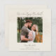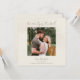 Anuncie seu noivado e envie uma salva de data com este único cartão de praça tropical. O design de folha de palma tropical mínimo é fácil de personalizar.A folha de palma da vintage num fundo de cor de areia macia, combinada com um belo emparelhamento de fontes, cria um aspecto único e sofisticado que é perfeito para o seu dia especial. Adicione sua foto quadrada e personalize o texto. Certifique-se de verificar outros produtos na nossa suíte de casamento.