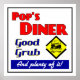 Dinheiro bom e abundante da cozinha dizendo em letras vermelhas achatadas com um hambúrguer gigante Um tema publicitário de restaurante retrô para o seu pai ou seu cozinheiro favorito.