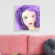 Apresenta um desenho de arte pastel abstrato de uma garota com cabelo roxo.