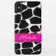 Uma capas de iphone de impressão em animais cor-de-rosa-quente e monocromática. Este padrão original de Sarah Trett é baseado no padrão encontrado em uma girafa. Um caso excelente para garotas, mulheres ousadas e adolescentes de moda. Com essa cor brilhante, seu telefone será fácil. Personalize com o nome de sua escolha que lê Michelle.