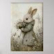 Impressão Antiga de Coelhinho e Flores, Coelho da