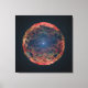 Impressão artística da supernova 1993J, uma estrela explosiva na galáxia M81 cuja luz nos atingiu há 21 anos. A supernova originou-se de um sistema de duas estrelas em que um membro era uma estrela massiva que explodiu depois de fincar a maior parte de seu envelope de hidrogênio para sua estrela companheira. Depois de duas décadas, os astrônomos identificaram finalmente a estrela companheira que queima hélio azul, vista no centro da nebulosa em expansão de detritos da supernova.