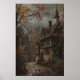 Impressão de Arte da Cabana de Outono, Arte de Parede de Outono Rústica Imprimível, Decoração Escura de Cottagecore, Arte de Parede de Halloween Paisagem de Outono de Conto de Fadas