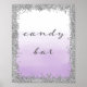 Poster impressão para a placa de casamento "Bar doce" com design brilhante de prata falso e cor de água roxa de lavanda roxa.