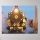 A locomotiva de Sumpter Valley nº 19 brilha no início da manhã à luz de McEwen Oregon. Foto e design por Cynthia Mayhall Christy