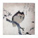 Impressão da antiguidade da arte de Woodblock do japonês. Pássaro da coruja em um ramo.