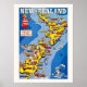 Um mapa postal vintage da Nova Zelândia maravilhosamente ilustrado e reorientado!