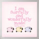 Esta impressão de arte de jardim tem três cordeiros pastéis bonitos com uma escritura a rosa de Salms 139:14 que diz "Eu sou temível e maravilhosamente feito" em camisetas infantis, botões, adesivos e mais presentes cristãos para crianças e bebês.