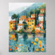 Traga um charme europeu vibrante para a sua casa com este impressão de arte caprichosa que apresenta uma aldeia colorida ao lado do lago aninhada entre árvores de ciprestes e flores silvestres. Com edifícios aquecidos de amarelo e terracota refletidos em águas tranquilas azuis, esta cena evoca o romance da costa italiana ou uma fuga pacífica do Mediterrâneo. Perfeito para amantes de viagem, torcedores de cottagecore, ou qualquer pessoa que deseje uma alegre explosão de cor floral e serenidade cênica em suas paredes.