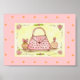 Uma bonito bolsa rosa, rosas cor-de-rosa, e garrafas de perfume decoram esta impressão de arte feminina. Esta decoração de parede é excelente para um quarto, banheiro, etc... A design é de arte original.